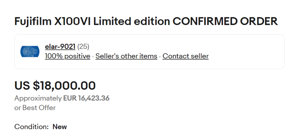 Κάποιος πουλάει μία συλλεκτική έκδοση της Fujifilm X100VI, χωρίς να την έχει παραλάβει ακόμα, προς 16,423.36 ευρώ!