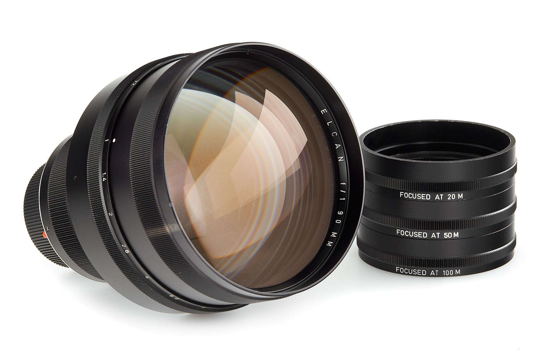 Ένας εξαιρετικά σπάνιος φακός σε άριστη κατάσταση και με καθαρά οπτικά και πλήρης και με τους τέσσερις δακτυλίους απόστασης (4457 για άπειρο, 4149 για 100μ, 4149 για 50μ και 4149 για 20μ). Ο δακτύλιος των 20 μέτρων είναι πρωτότυπο, κατασκευασμένο από τη Leica. Όλοι οι άλλοι δακτύλιοι, καθώς και το mount, κατασκευάστηκαν από την Ottmar Michaely στη Γερμανία σύμφωνα με τις αρχικές προδιαγραφές.