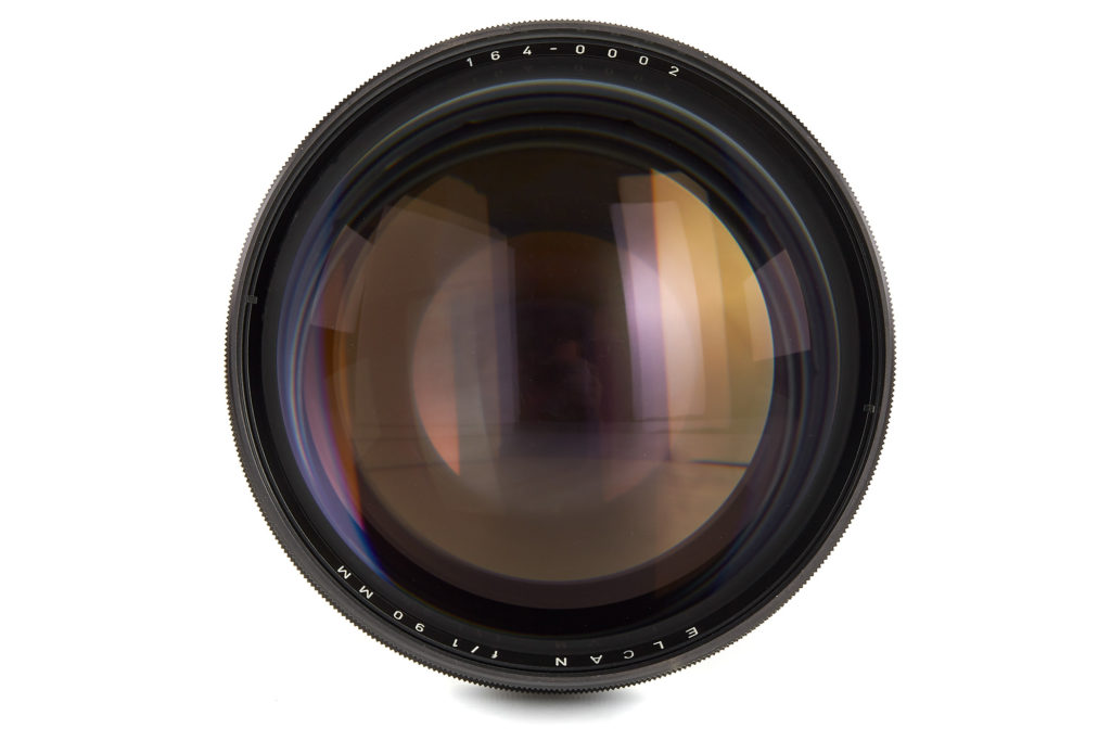 Ο φακός σχεδιάστηκε ως σύστημα σταθερής εστίασης, με δακτυλίους ρύθμισης για διαφορετικές εστιακές αποστάσεις. Μόνο δέκα φακοί 90mm F / 1.0 Elcan έχουν παραχθεί, αυτός που προσφέρεται εδώ είναι ο δεύτερος.