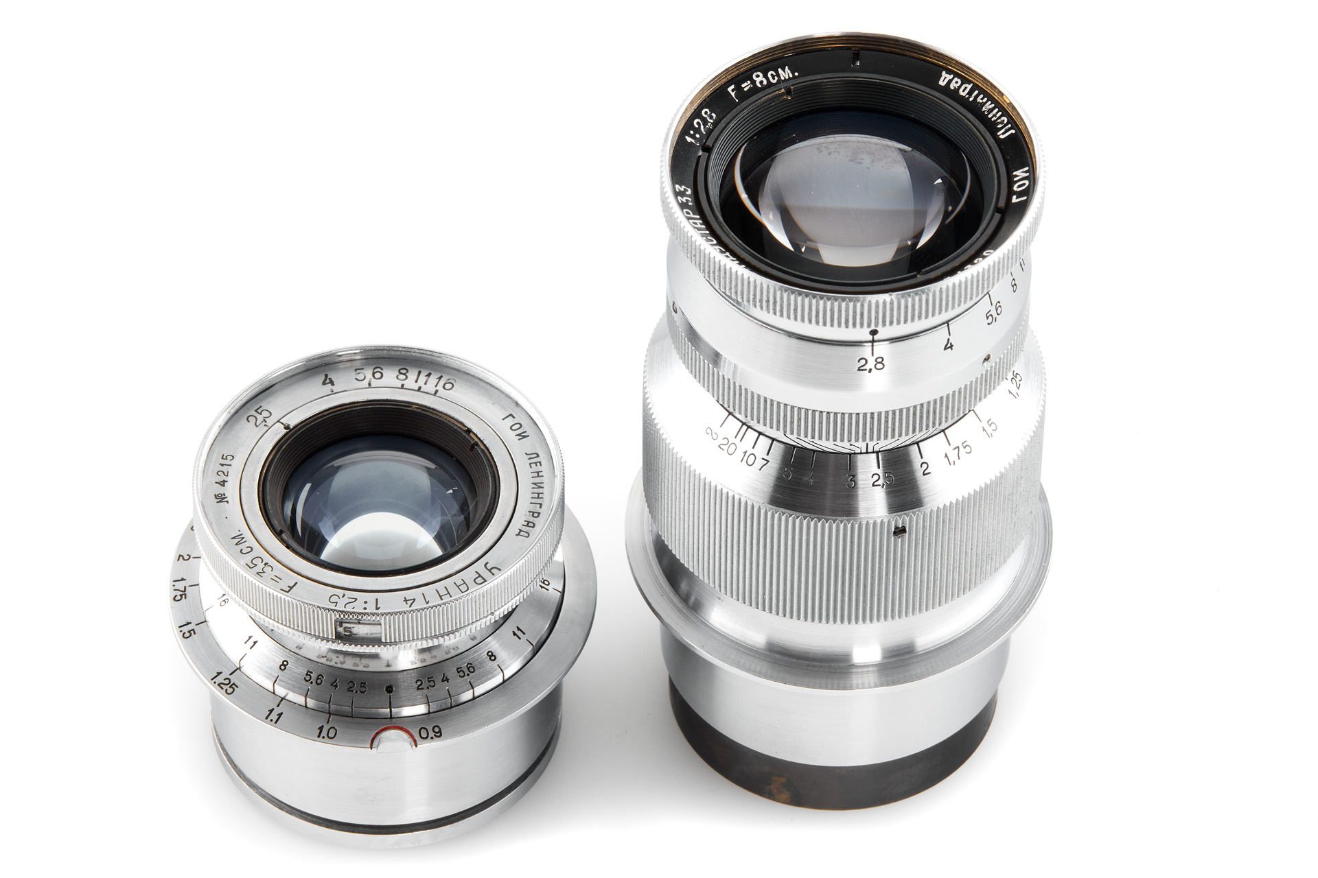 Μαζί με την κάμερα περιλαμβάνονται τρεις αντίστοιχοι πρωτότυποι φακοί: GOI Uran-14 2,5 / 3,5cm no. 4215 (με πτυσσόμενο mount, με μπροστινό καπάκι), GOI Jupiter-3 1,5 / 5cm no.4395 (επίσης με πτυσσόμενο mount, με εμπρός καπάκι) και GOI Industar-33 2,8 / 8cm αρ. 4320 (με μπροστινό καπάκι), και οι τρεις δείχνουν εκπληκτική τεχνική ακρίβεια και προσοχή στις λεπτομέρειες, που δεν φαίνονται στις ρωσικές σειριακές κάμερες παραγωγής.