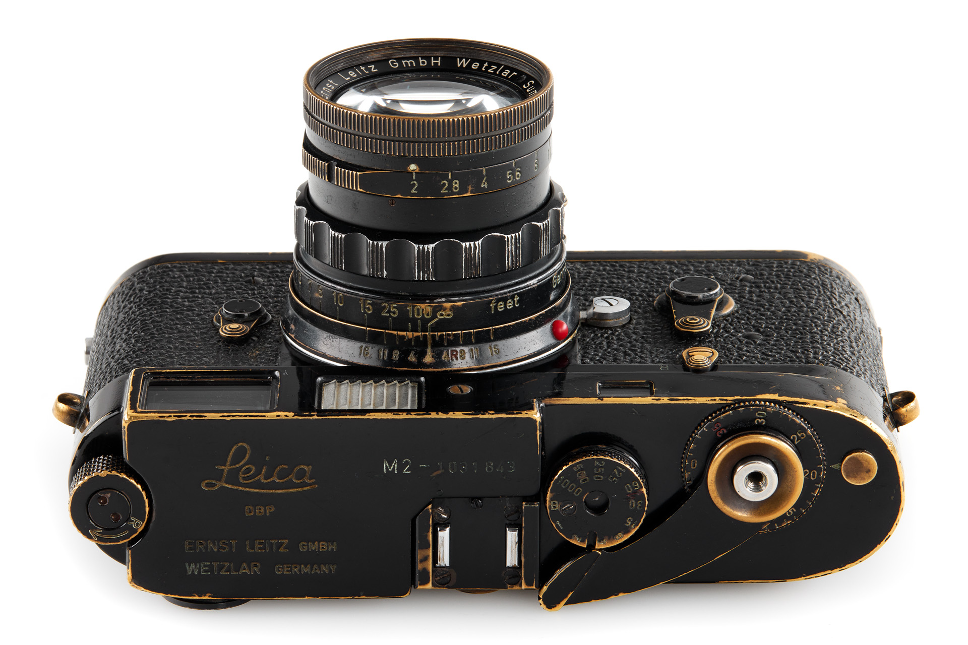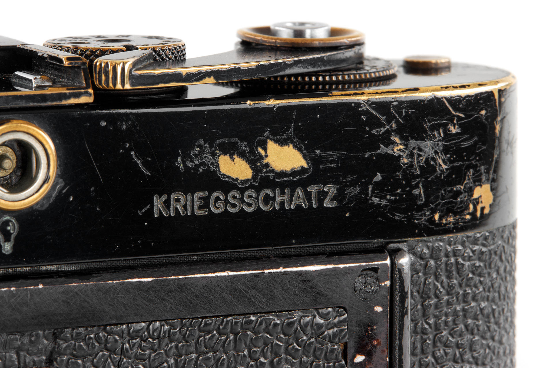 Μία πολύ ιδιαίτερη Leica M2 σε μαύρο χρώμα, που ανήκει και χρησιμοποιείται από τον διάσημο Γάλλο καλλιτέχνη Sarkis Zabunyan. Η λέξη «KRIEGSSCHATZ» χαραγμένη στο πίσω μέρος της πάνω πλάκας είναι ο θεμέλιος λίθος πολλών εκθέσεων και έργων τέχνης του Sarkis. Η κάμερα συνοδεύεται από ορειχάλκινο φακό Summicron 2 / 50mm no.1474808.