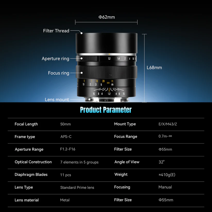 Ο φακός καλύπτει αποκλειστικά αισθητήρες APS-C και τοποθετείται ξεκάθαρα ως μια entry αλλά δημιουργική λύση για φωτογράφους και κινηματογραφιστές που θέλουν να πειραματιστούν με πολύ ανοιχτά διαφράγματα, χωρίς να επενδύσουν μεγάλα ποσά.