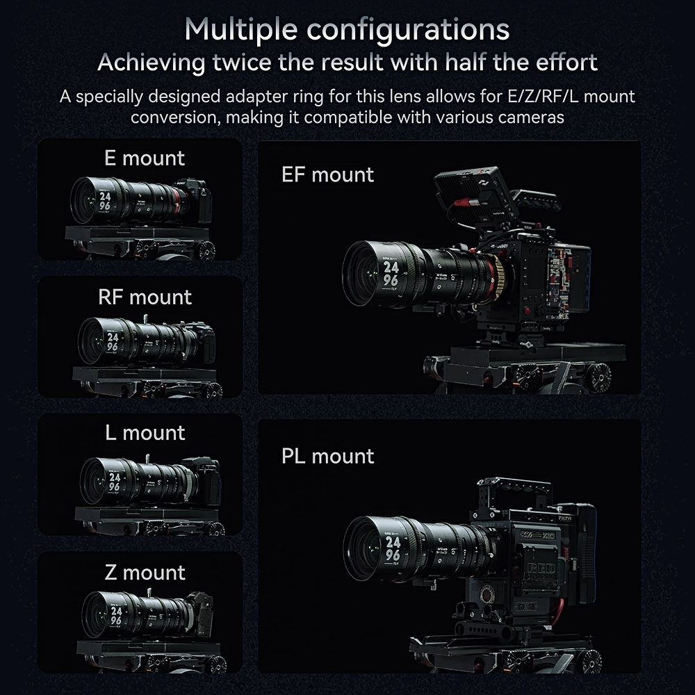 Ο νέος φακός κυκλοφόρησε για συστήματα Canon EF και PL mount αλλά μέσω ειδικού αντάπτορα μπορεί να προσαρμοστεί και σε συστήματα Sony E, Nikon Z, Canon RF και L-mount (διαφορετικός ανάλογα το mount). Η εταιρία υπόσχεται ελάχιστο focus breathing και υψηλή ευκρίνεια από άκρη σε άκρη. Προσφέρει οριζόντια γωνία θέασης από 54.5 έως 14.3 μοίρες (σε αντιστοιχία με το εστιακό εύρος του).