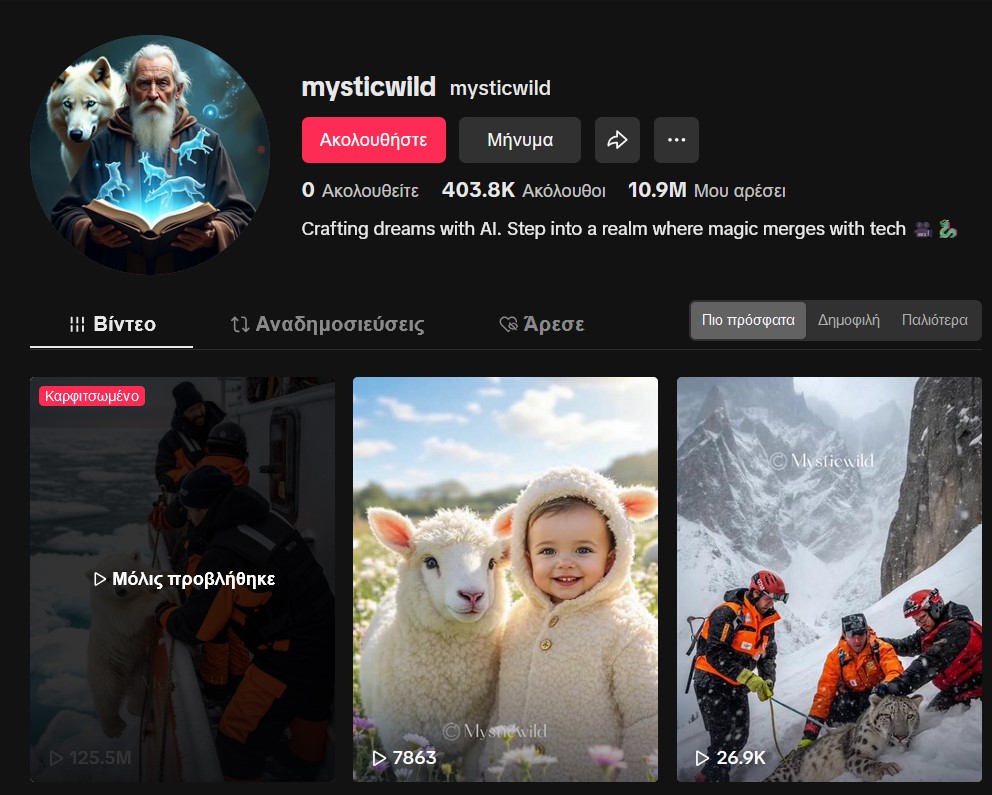 Αρχικά εμφανίστηκε στο TikTok λογαριασμό mysticwild εδώ όπου έγινε χαμός, καθότι μιλάμε για πάνω από 125 εκατομμύρια προβολές. Ωστόσο, οι χρήστες που το είδαν εκεί δεν πρόσεξαν ότι στον λογαριασμό mysticwild αναφέρει το εξής: “Crafting dreams with AI”.