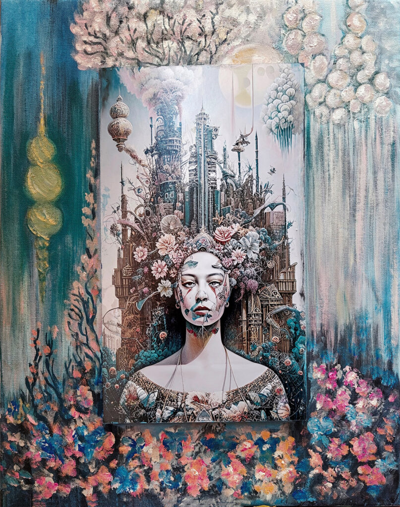 Έτσι, οι δύο καλλιτέχνες συνεργάζονται και συνδιαλέγονται μέσα από τα έργα τους, ενώνοντας τη φωτογραφία, τη ζωγραφική και τους αλγορίθμους της Τεχνητής Νοημοσύνης δημιουργώντας μία νέα οπτική γλώσσα.