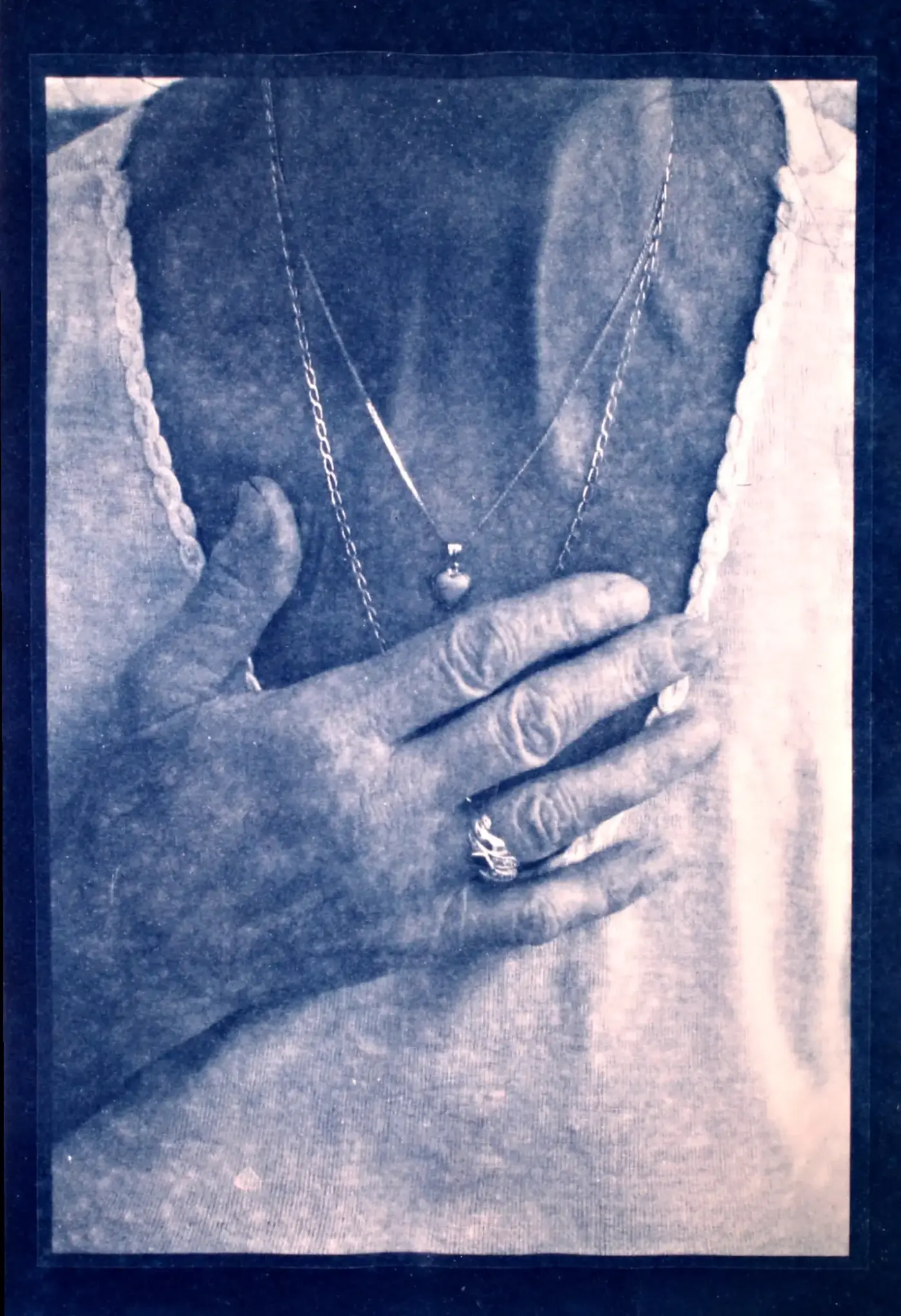 Με την τεχνική της Κυανοτυπίας, το βαθύ μπλε γίνεται ένα πεδίο, όπου η μνήμη άλλοτε φωτίζεται κι άλλοτε χάνεται ενώ τα πορτραίτα – καθαρά ή θολά – αποτυπώνουν την επίδραση του χρόνου και των μεταβολών της αυτοαντίληψης.
