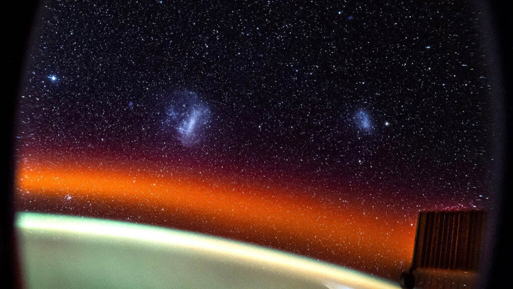 Από τότε που επέστρεψε στον ISS (τον περασμένο Σεπτέμβρη), ο Don Pettit φωτογραφίζει και άλλα αντικείμενα εκτός από τη Γη και το βόρειο σέλας. Δείτε για παράδειγμα την παρακάτω εικόνα που δείχνει 2 “κοντινούς” γαλαξίες οι οποίοι βρίσκονται σε τροχιά γύρω από το δικό μας! Πρόκειται για το μεγάλο και το μικρό νέφος του Μαγγελάνου που βρίσκονται περίπου 200.000 έτη φωτός μακριά μας.