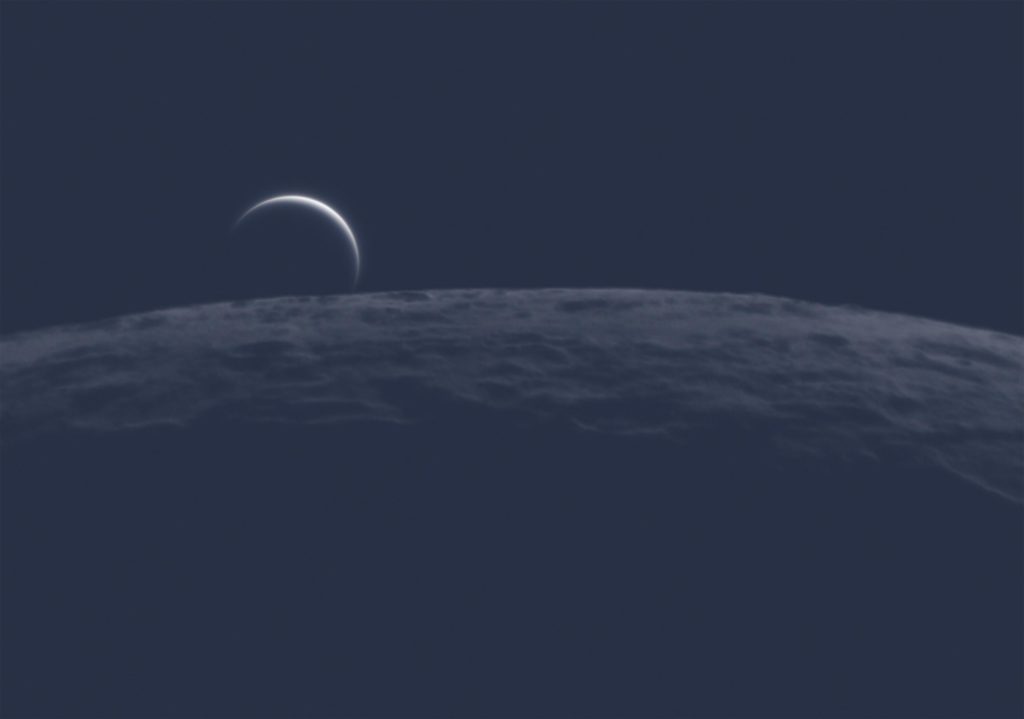 Σε μια προοπτική που θυμίζει τις αποστολές Apollo, ο σεληνιακός ορίζοντας στέφεται με μία λωρίδα φωτός. Ωστόσο, αυτή δεν είναι η Γη που ανεβαίνει πάνω από τη Σελήνη. Η Αφροδίτη λίγο πριν κρυφτεί από τη Σελήνη, όπως παρατηρείται από τον πλανήτη μας στο φως της ημέρας. Ο βραχώδης ορίζοντας της Σελήνης εμφανίστηκε πολύ σκοτεινός σε αντίθεση με την αστραφτερή ημισέληνο του πλανήτη που περιβάλλεται από λευκά σύννεφα.