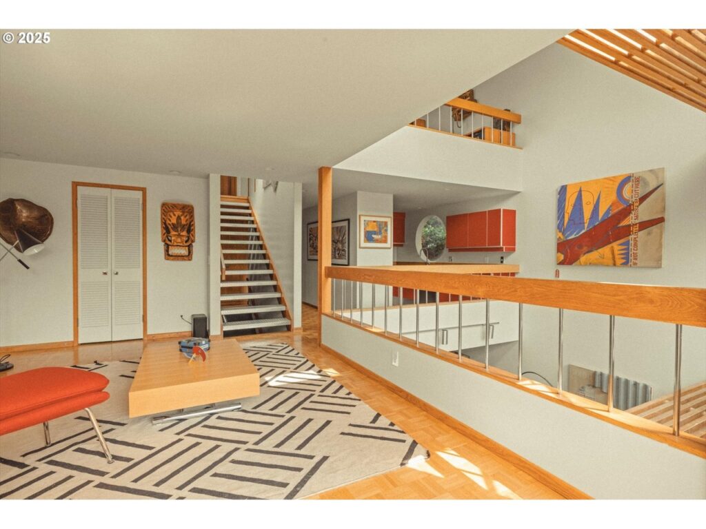 Το τριώροφο σπίτι, έργο του γνωστού αρχιτέκτονα Willard Martin το 1976, έχει επιφάνεια 117 τ.μ., διαθέτει δύο υπνοδωμάτια, δύο μπάνια και βρίσκεται σε οικόπεδο 930 τ.μ. Η κατασκευή του από κυματοειδές αλουμίνιο, τα decks σε κάθε επίπεδο, τα μεγάλα παράθυρα και οι ιδιαίτερες λεπτομέρειες, όπως τα custom ελληνικά νιπτήρια και τα παρκέ δάπεδα, προσδίδουν έναν μοναδικό χαρακτήρα που ισορροπεί ανάμεσα στο καλλιτεχνικό και το πολυτελές.