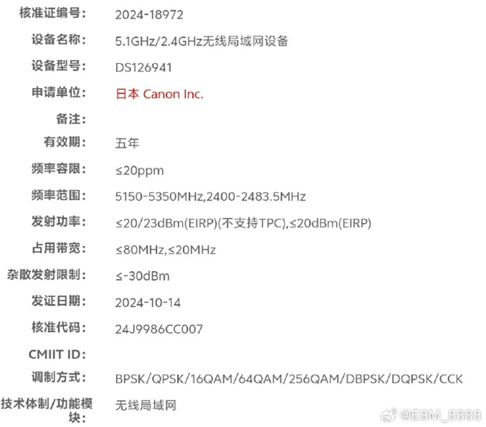 Η Canon έχει ήδη καταχωρήσει στην Ασία ένα νέο μοντέλο κάμερας (dual-band WIFI) με κωδική ονομασία DS126941 που μάλλον πρόκειται για την επερχόμενη Canon EOS R6 Mark III:
