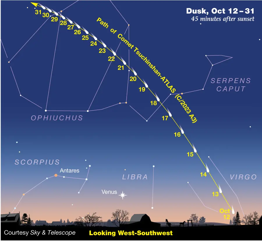 Ο κομήτης C/2023 A3 (Tsuchinshan-ATLAS) σύντομα θα αρχίσει να απομακρύνεται από τη Γη, με τη λαμπρότητά του να μειώνεται σταδιακά. Αυτή η περίοδος αποτελεί μια σπάνια ευκαιρία να τον παρατηρήσετε, καθώς είναι ένα από τα πιο λαμπρά ουράνια σώματα που έχουν εμφανιστεί τα τελευταία χρόνια.