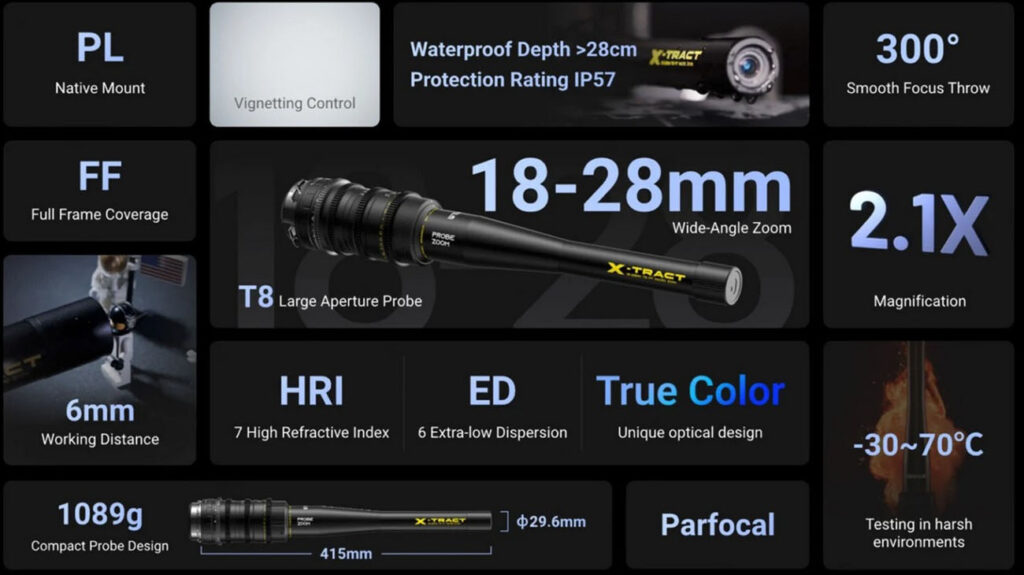Η DZOFilm λανσάρει τον νέο macro ζουμ κινηματογραφικό φακό X-Tract 18-28mm T8 Probe για full-frame συστήματα.