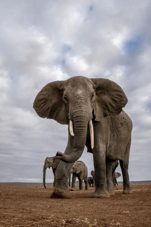 Το Εθνικό Πάρκο Amboseli στην Κένυα είναι γνωστό για τα τεράστια κοπάδια ελεφάντων. Εκείνη την ημέρα είδα ένα τεράστιο κοπάδι να περπατάει σε μια ξηρή λίμνη. Τράβηξα μερικές φωτογραφίες από μεγάλη απόσταση με τον τηλεφακό μου αλλά μετά αποφάσισα ότι ήθελα να πλησιάσω πολύ κοντά.