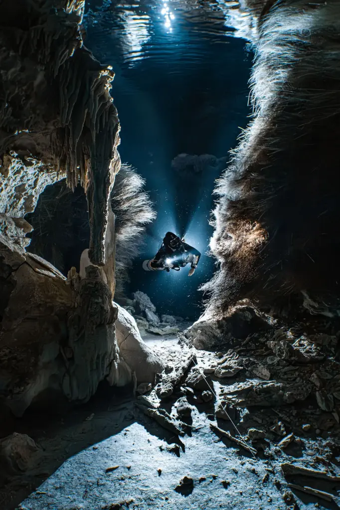 Στην κατηγορία Compact, ο Manuel Wüthrich μετέφερε τον θεατή σε υποβρύχια σπηλιά στο Cenote Dos Pisos στο Μεξικό. Ένας δύτης, φωτισμένος από στενή δέσμη, κινείται ανάμεσα σε σταλακτίτες και ρίζες που διαπερνούν την οροφή, με την εικόνα να δίνει έμφαση όχι στην τεχνική, αλλά στη σιωπή και την αίσθηση του χώρου.