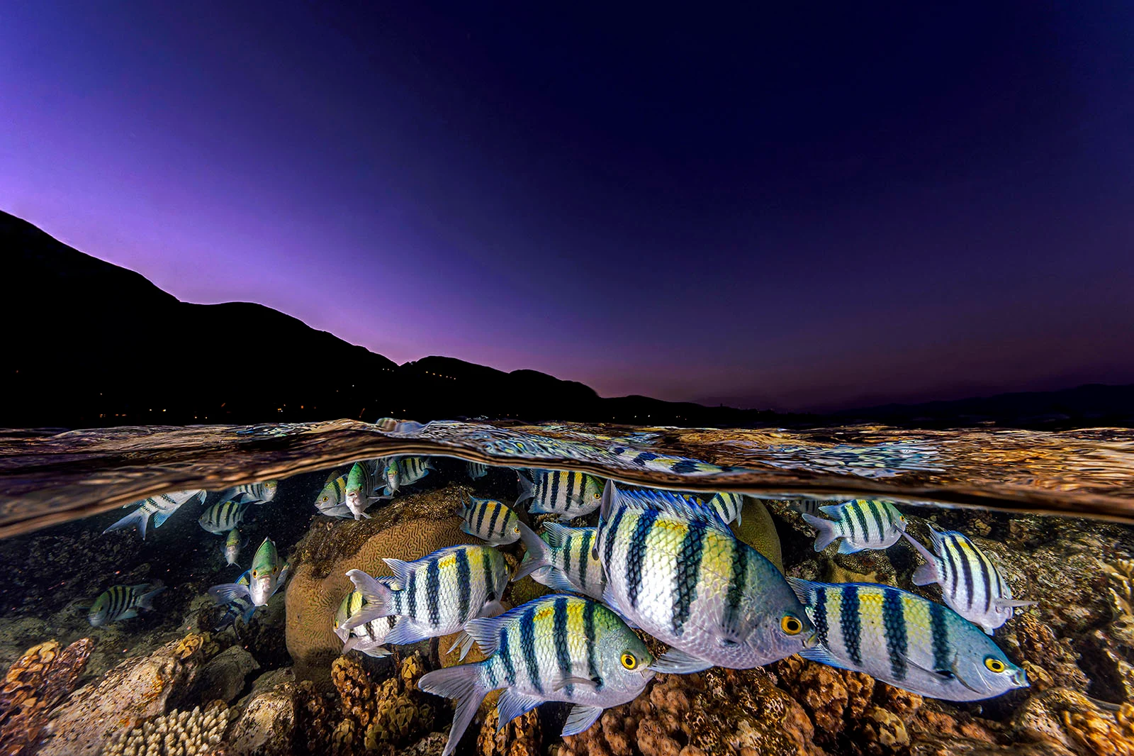 Η κατηγορία Unrestricted πήγε στον Karyll Gonzalez για μια σύνθετη εικόνα από το Lembeh της Ινδονησίας, όπου ένα snake eel συνυπάρχει με καθαριστικές γαρίδες. Η κρίσιμη λεπτομέρεια –μια γαρίδα ακριβώς πάνω από το μάτι του χελιού– συνδυάστηκε με ένα φωτεινό sun ball από διαφορετική στιγμή του ταξιδιού, δημιουργώντας ένα καρέ που ισορροπεί ανάμεσα στο ντοκουμέντο και τη δημιουργική σύνθεση.