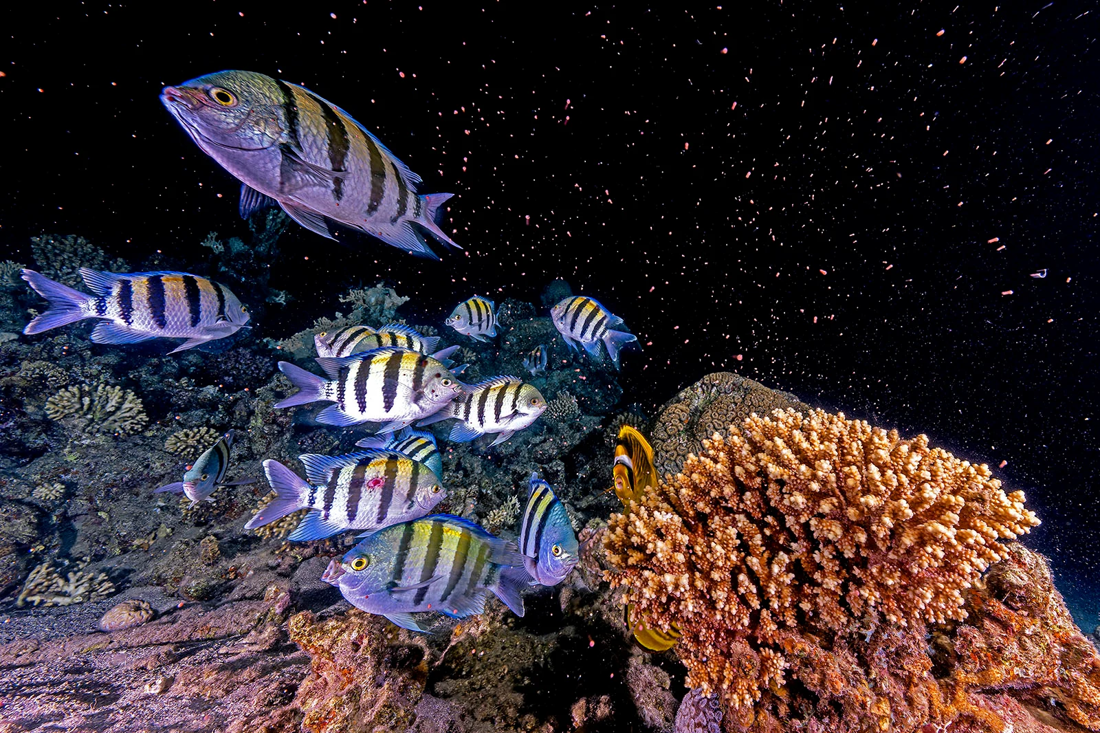 Στην κατηγορία Macro, ο Sunbong Jung αποτύπωσε ένα μικροσκοπικό fangblenny τη στιγμή που εκτινάσσει άμμο από το στόμα του καθώς καθαρίζει το λαγούμι του. Η εικόνα «παγώνει» την πιο εκρηκτική φάση μιας κατά τα άλλα μεθοδικής διαδικασίας, αποκαλύπτοντας πόσο σύνθετη μπορεί να είναι η συμπεριφορά ακόμη και των πιο μικρών θαλάσσιων οργανισμών.