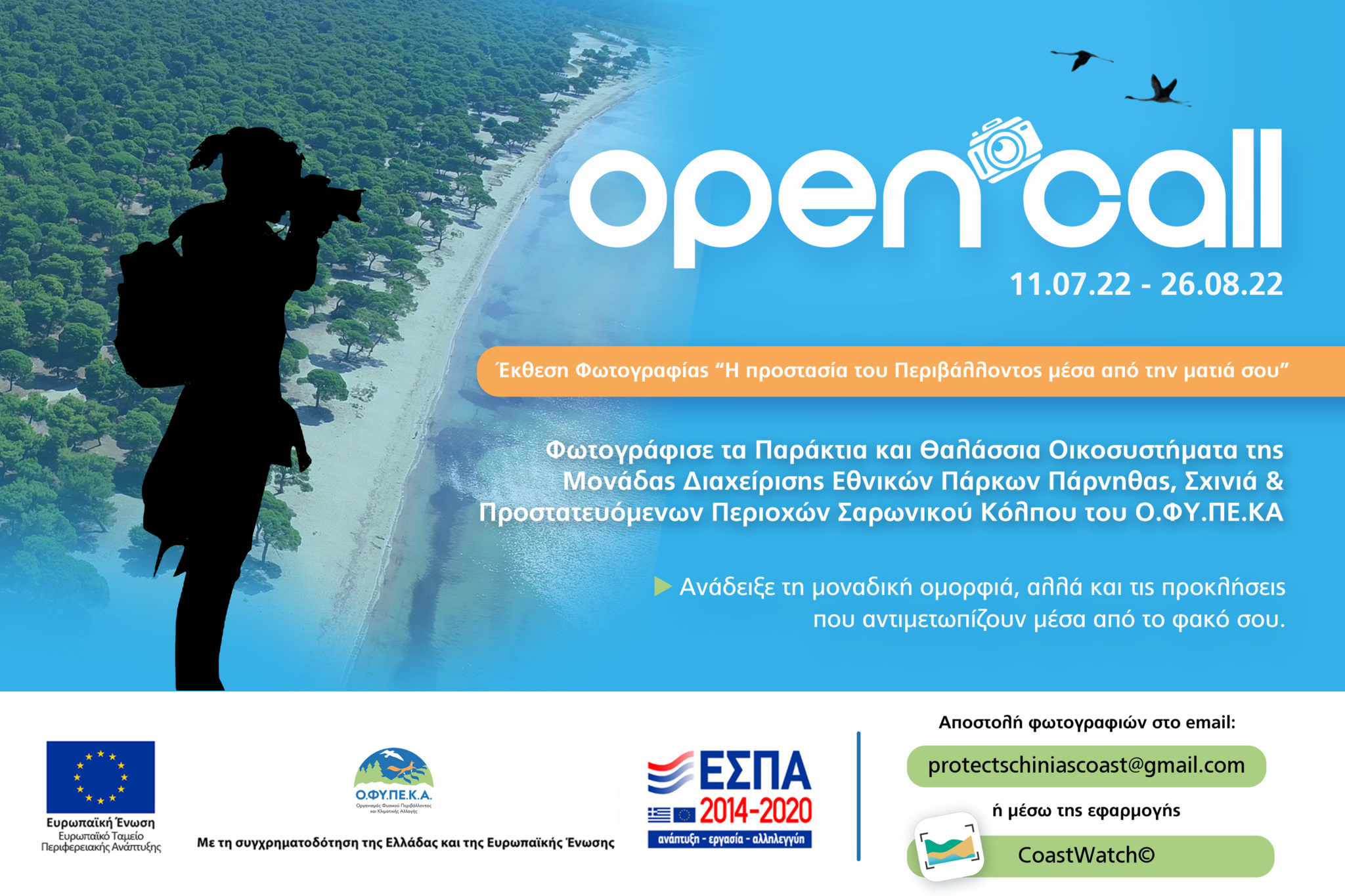 Ο Οργανισμός Φυσικού Περιβάλλοντος & Κλιματικής Αλλαγής (Ο.ΦΥ.ΠΕ.ΚΑ) και το MEDASSET- Μεσογειακός Σύνδεσμος για τη Σωτηρία των Θαλάσσιων Χελωνών καλούν ερασιτέχνες και επαγγελματίες φωτογράφους, αλλά και όλους τους λάτρεις της φύσης να συμμετέχουν με φωτογραφικό υλικό στην Έκθεση Φωτογραφίας για την ανάδειξη των προστατευόμενων περιοχών της Αττικής “Η προστασία του Περιβάλλοντος μέσα από την ματιά σου“.