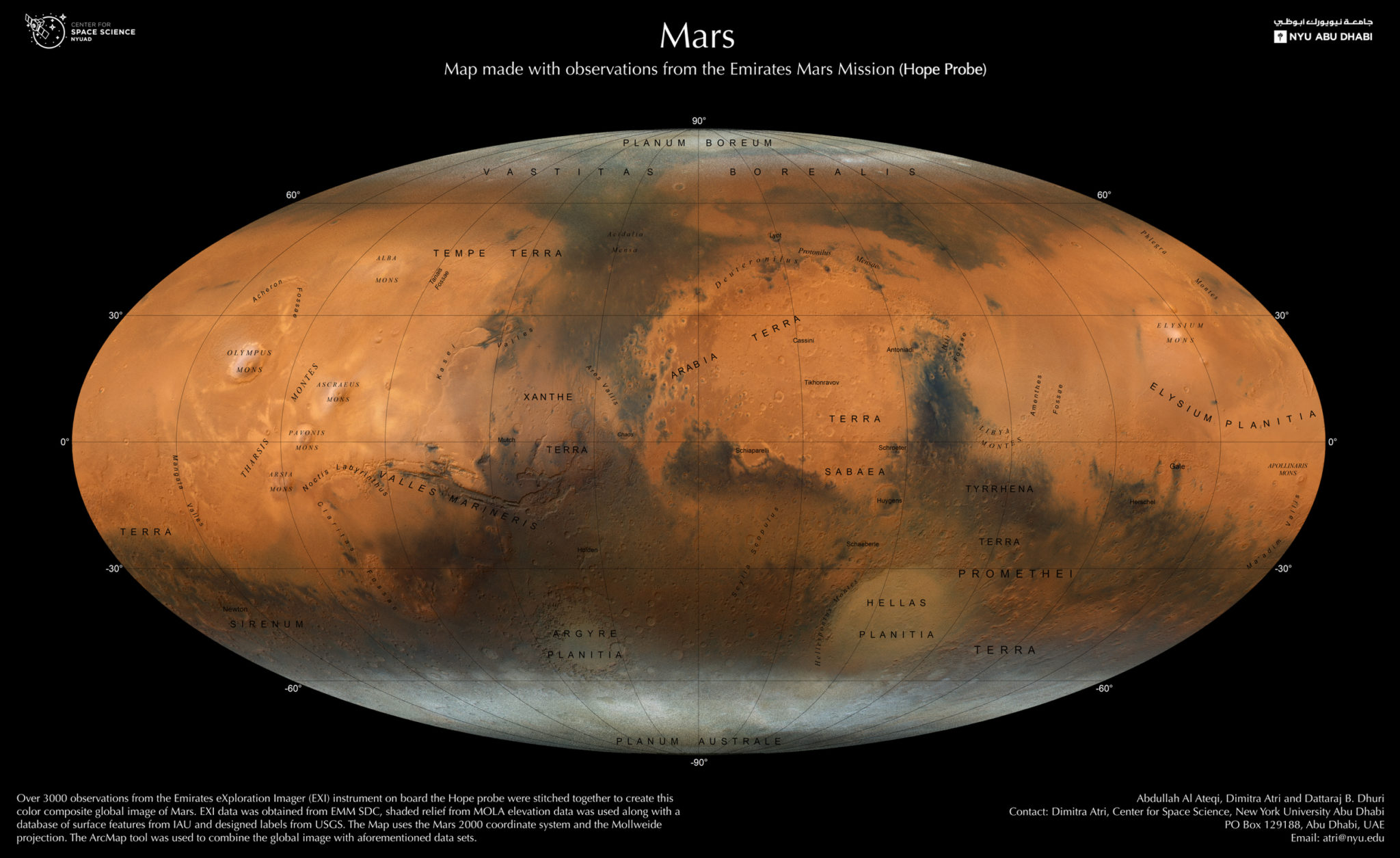 Μια ομάδα επιστημόνων με επικεφαλής το Πανεπιστήμιο της Νέας Υόρκης στο Άμπου Ντάμπι (NYUAD) και το Κέντρο Διαστημικής Επιστήμης των Ηνωμένων Αραβικών Εμιράτων (ΗΑΕ) δημιούργησαν έναν χάρτη υψηλής ανάλυσης του Άρη.