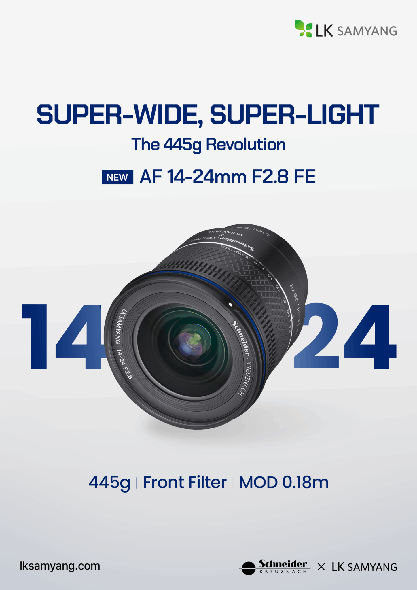 Η LK Samyang ανακοίνωσε την 22η Απριλίου 2025 την κυκλοφορία του πρώτου της super-wide zoom φακού, AF 14-24mm F2.8 FE, σε συνεργασία με την Schneider-Kreuznach.