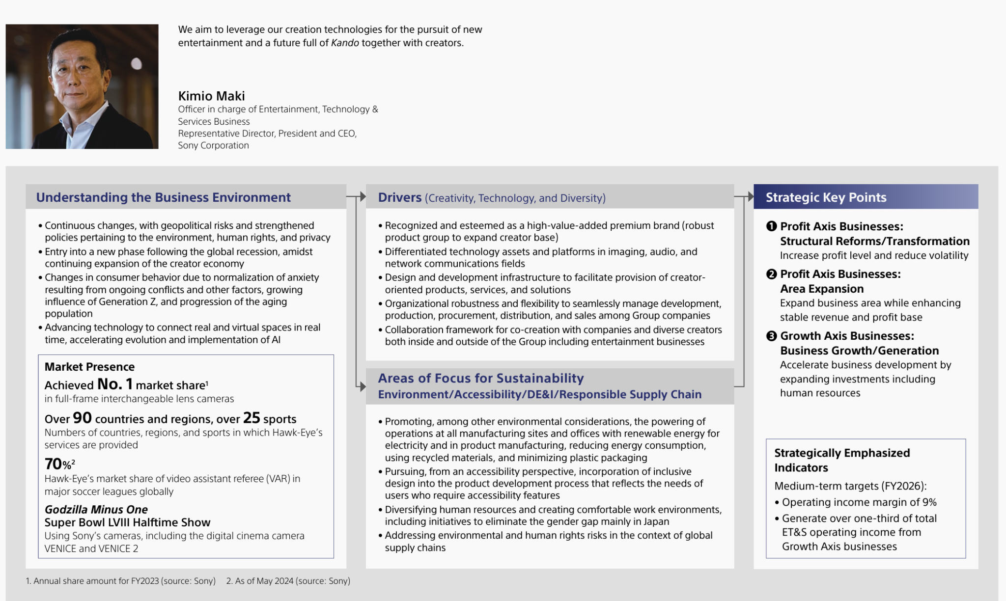 Στην κατηγορία των αισθητήρων εικόνας, η Sony αναμένεται να αυξήσει το παγκόσμιο μερίδιό της στο 53% για το 2024, από 49% που ήταν το 2022. Η εταιρεία φιλοδοξεί να φτάσει το 60% της αγοράς μέχρι το 2025, αναμένοντας αύξηση στη ζήτηση αισθητήρων εικόνας για κάμερες smartphones, καθώς αυτά γίνονται ολοένα και πιο ισχυρά και με μεγαλύτερους αισθητήρες.