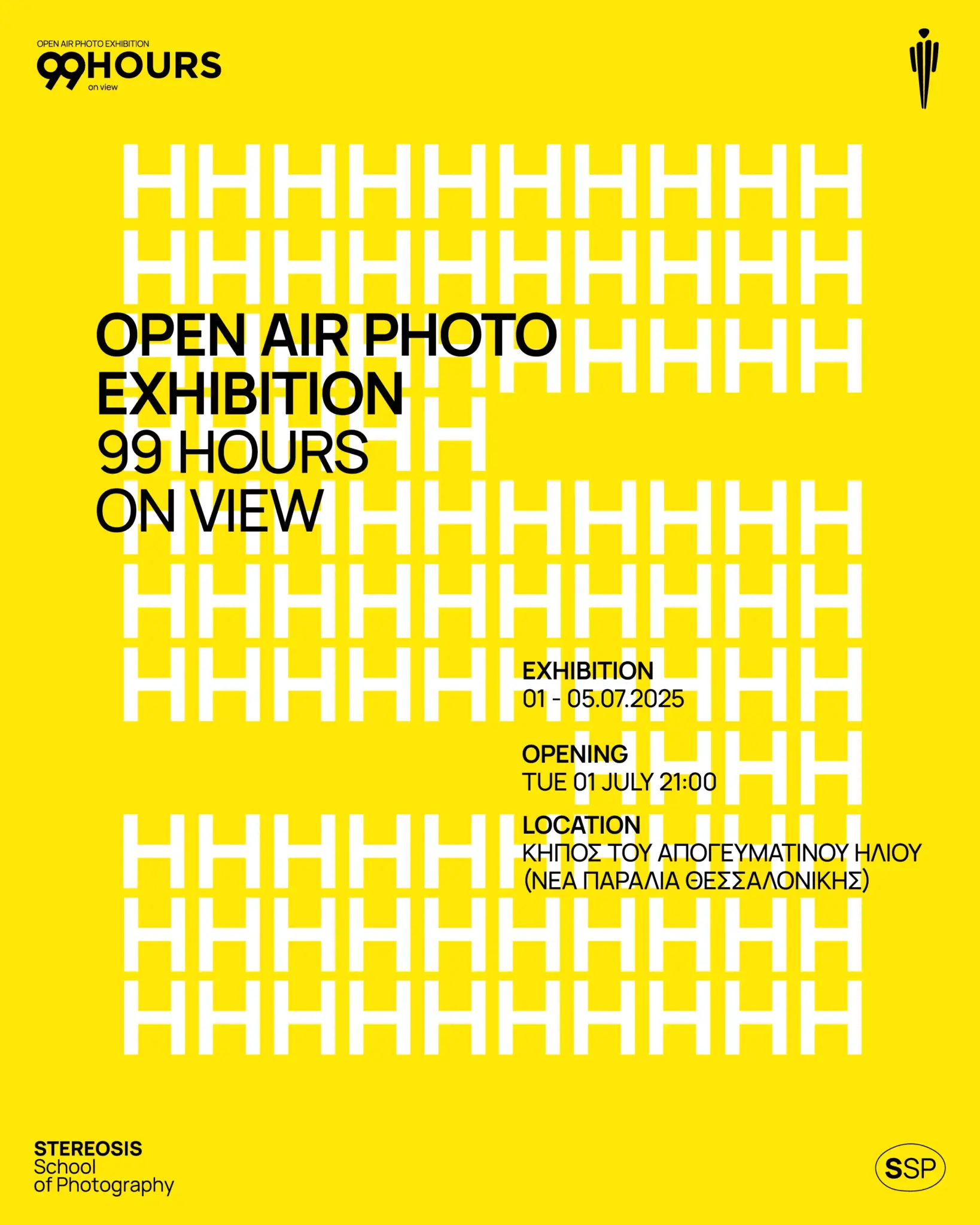 Το φωτογραφικό κέντρο Stereosis σας προσκαλεί στην υπαίθρια έκθεση φωτογραφίας με τον διακριτικό τίτλο “Stereosis 99 hours On View” και παρουσιάζει ως κεντρικό της άξονα τη δουλειά 143 νέων φωτογράφων της πόλης.