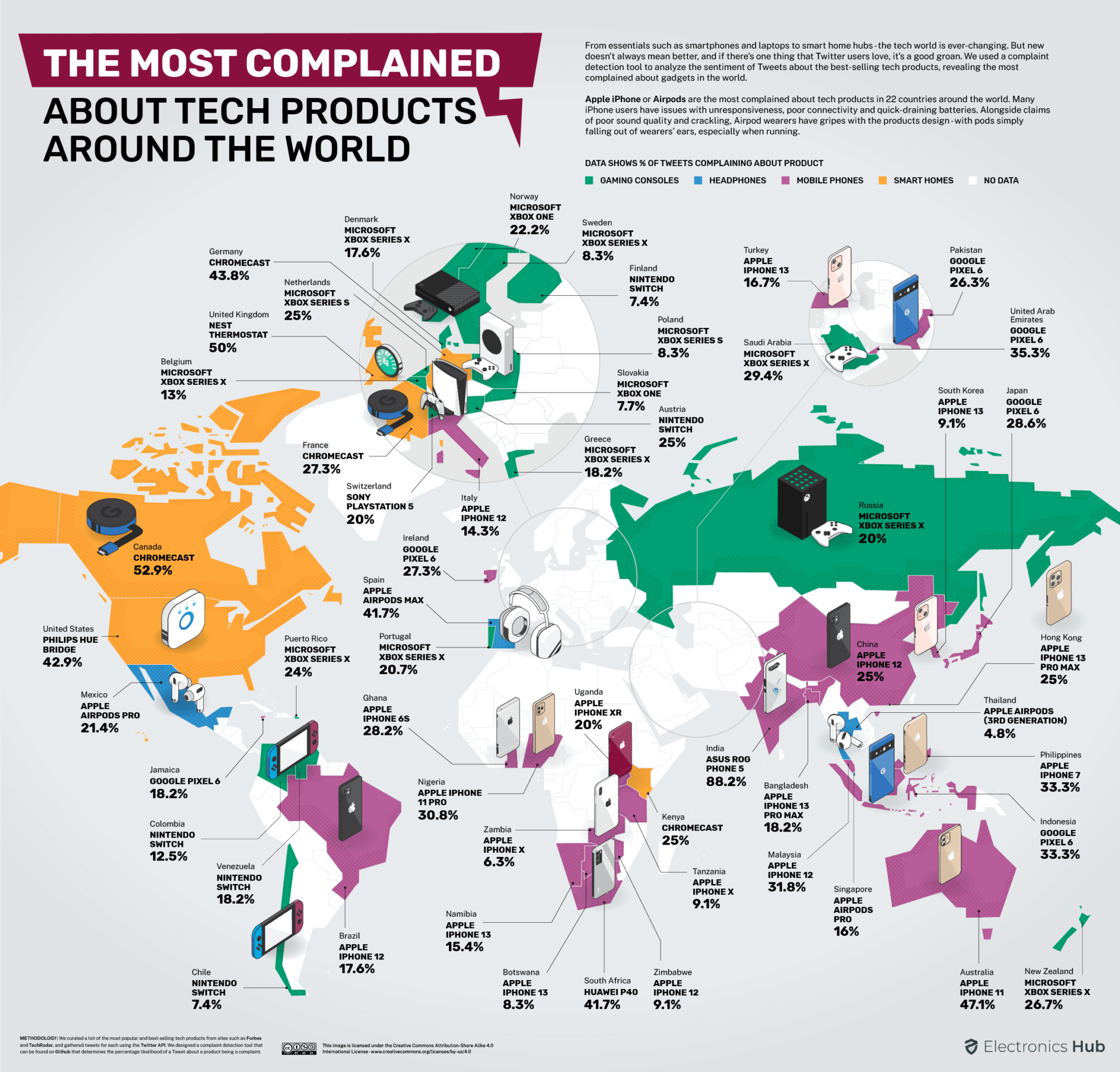 Η Electronics Hub δημοσίευσε μια έρευνα που εξέτασε τα προϊόντα τεχνολογίας για τα οποία υπήρχαν τα περισσότερα παράπονα στον κόσμο.