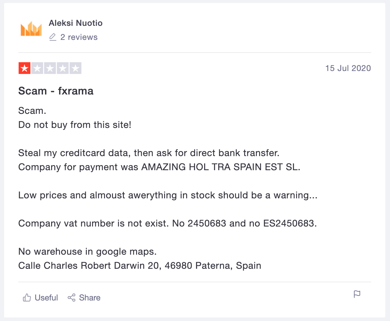 Aπό ότι βλέπετε στα παραπάνω reviews τουλάχιστον δύο ακόμα Έλληνες φαίνεται να εξαπατήθηκαν με τον χρήστη vasiliki koutsoupa να αναφέρει ότι έχασε 4.000 ευρώ.