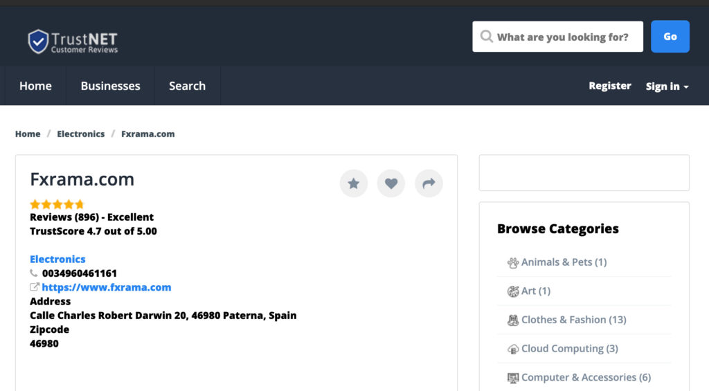 Φυσικά πριν προχωρήσει στην παραγγελία έκανε μία έρευνα στο internet για να μάθει για την αξιοπιστία του site και βρήκε πληροφορίες μόνο σε ένα site με reviews πελατών, το TrustNet. Εκεί υποτιθέμενοι πελάτες έδιναν πολύ υψηλή βαθμολογία στο συγκεκριμένο site, 4.7/5. Το συγκεκριμένο site με reviews φέρεται να έχει στηθεί μάλλον από το ίδιο άτομο που έστησε και το site – eshop, ώστε να έχει θετικά reviews και υψηλή βαθμολογία για τους εν δυνάμει πελάτες.