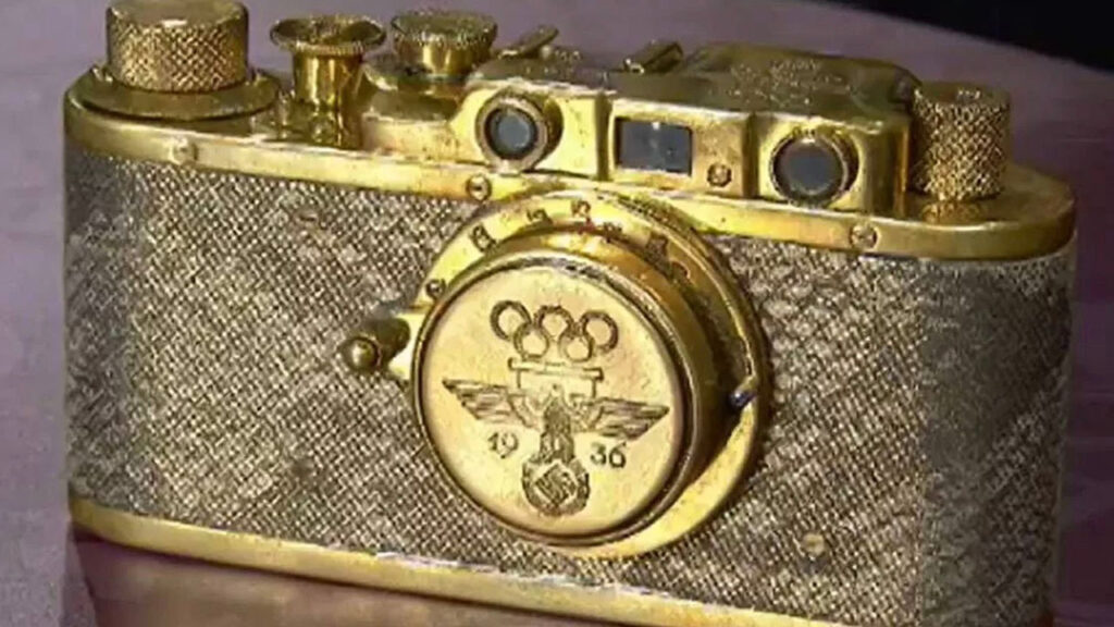 Πράγματι, η εν λόγω “χρυσή Leica” έχει στο μπροστινό μέρος (lens cap) χαραγμένο το σήμα των Ολυμπιακών Αγώνων με ημερομηνία 1936, ενώ φαίνεται καθαρά και το σήμα των Ναζί (με το πουλί και τη σβάστικα).