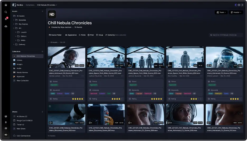 Η κύρια καινοτομία του Frame.io είναι η δυνατότητα συγκέντρωσης όλων των δημιουργών, συνεργατών και εμπλεκομένων σε ένα κεντρικό σημείο, μαζί με τα στοιχεία (assets) που διαχειρίζονται. Με ένα νέο μοντέλο μεταδεδομένων, η πλατφόρμα διευκολύνει την οργάνωση και διαχείριση των αρχείων μέσω tags, όπως αξιολογήσεις, υπεύθυνος, προθεσμίες και τύπος μέσου. Έτσι, οι χρήστες μπορούν να δημιουργούν “Συλλογές” που ενημερώνονται αυτόματα με βάση τα κριτήρια που ορίζουν.