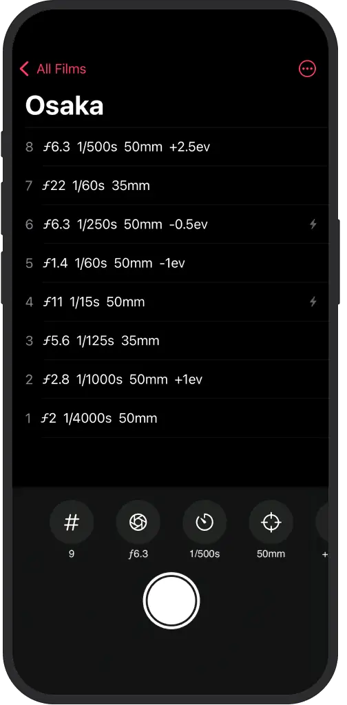 Η εφαρμογή λειτουργεί ως ένα ψηφιακό σημειωματάριο ειδικά σχεδιασμένο για φωτογράφους φιλμ, με στόχο κάθε λήψη να είναι ένα καταγεγραμμένο, συνειδητό καρέ.