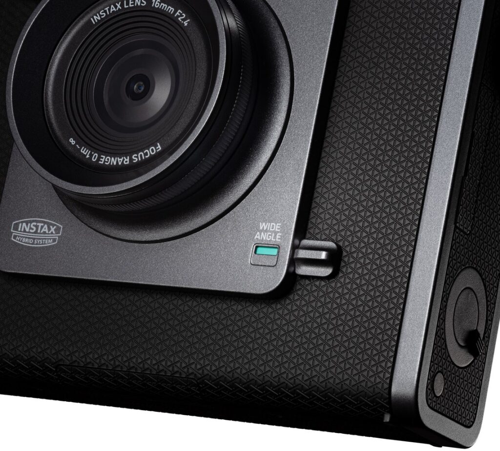 Ο φακός της έχει εστιακό μήκος 16mm (full-frame αντίστοιχο) με μέγιστο διάφραγμα f/2.4, που σύμφωνα με την εταιρία είναι ο πιο ευρυγώνιος φακός σε οποιαδήποτε κάμερα Instax. Η κάμερα διαθέτει διακόπτη wide angle mode για αυτό το εστιακό μήκος και standard mode (που δεν αναφέρει σε τι εστιακό μήκος τραβάει).
