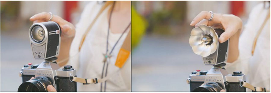 Ένα έξυπνο χαρακτηριστικό που διαθέτει το Lux Cadet είναι ο πτυσσόμενος ανακλαστήρας σε σχήμα πετάλου (petal-shaped reflector) ο οποίος μπορεί πολύ γρήγορα να βγει από την κεφαλή μέσω ενός συρόμενου διακόπτη στο πλάι του φλας.