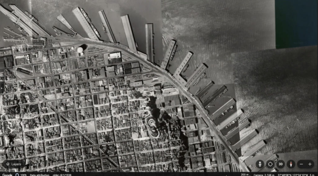 Και στο παρακάτω παράδειγμα δείτε το Σαν Φρανσίσκο πώς ήταν το 1938 (στα αριστερά) σε σύγκριση με το πώς είναι το Σαν Φρανσίσκο σήμερα (στα δεξιά). Η ναυτιλία και η βιομηχανία έχουν αντικατασταθεί από εστιατόρια και κρουαζιερόπλοια που κατακλύζουν το λιμάνι σήμερα.