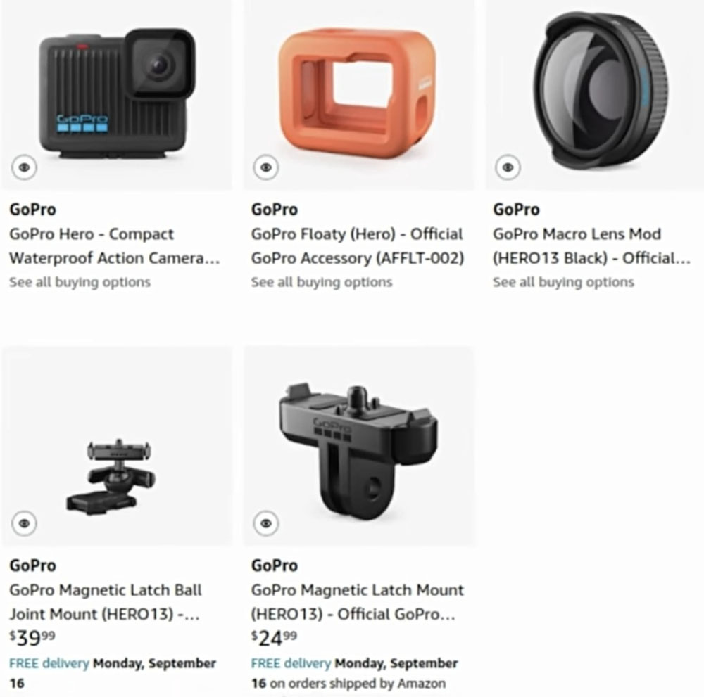Αυτό που κάνει εντύπωση, είναι ότι οι εν λόγω εικόνες δείχνουν καταχωρίσεις προϊόντων σχετικά με την επερχόμενη GoPro Hero 13 που περιλαμβάνουν και τιμές. Ωστόσο, στο Amazon αυτή τη στιγμή μάλλον έχουν κατέβει διότι δεν εμφανίζονται στην αναζήτηση.