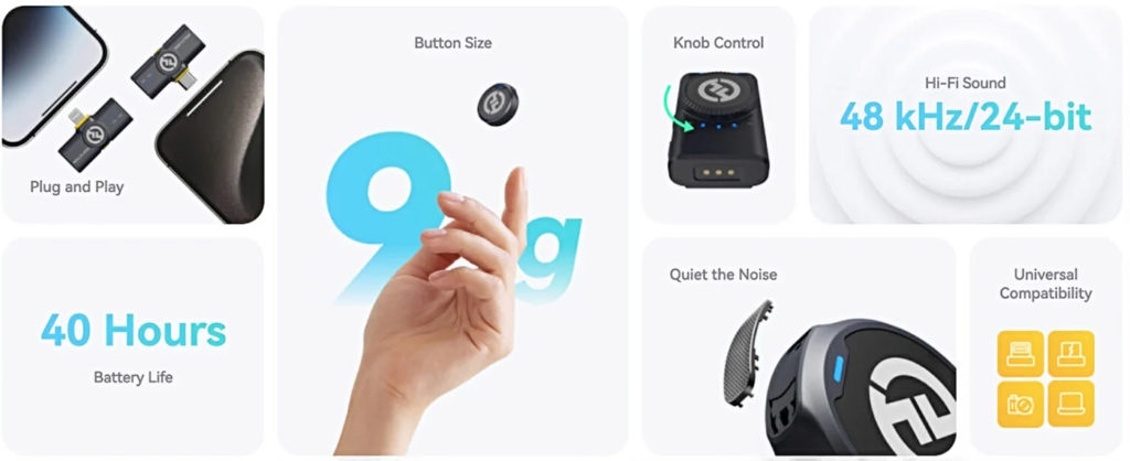 Το νέο Lark M2, προσφέρει τεράστια ασύρματη εμβέλεια 300 μέτρων σε συχνότητα 2,4Ghz και ο δέκτης σε μέγεθος κουμπιού ζυγίζει μόλις 9 γραμμάρια. Να αναφέρουμε ότι αν υπάρχουν εμπόδια η παρεμπόδιση σήματος λόγω κτηρίων κλπ, τότε η μέγιστη εμβέλεια γίνεται περίπου 40-60 μέτρα. Έχει απόκριση συχνότητας από 20Hz έως 20KHz με 115dB SPL και 94dB δυναμικό εύρος. Η συσκευασία (Combo Package) περιλαμβάνει θήκη φόρτισης, ασύρματους πομπούς για κάμερες και smartphones καθώς επίσης και 2 ασύρματα μικρόφωνα. Το σύστημα είναι συμβατό και με υπολογιστές.