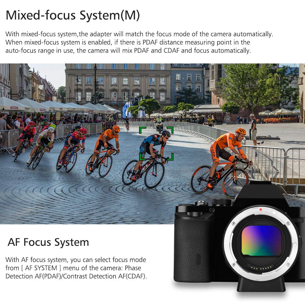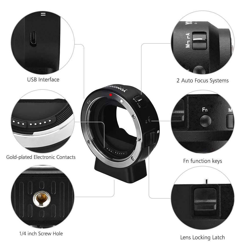 O νέος adapter διαθέτει διακόπτη για επιλογή του τρόπου εστίασης, αυτόματης λειτουργίας ή manual, ενώ υποστηρίζει και αυτόματη εστίαση ανίχνευσης αντίθεσης και ανίχνευσης φάσης (ανάλογα το μοντέλο του φακού και της μηχανής).