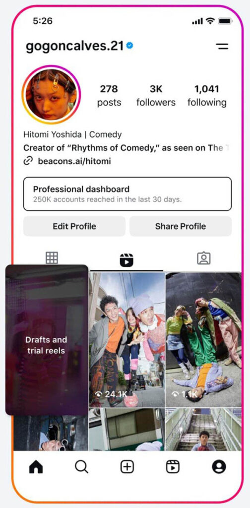 Πρόκειται για μια λειτουργία “δοκιμής” και για αυτό ονομάζεται “Trial Reels” (από το trial που παραπέμπει σε κάτι δοκιμαστικό). Η νέα αυτή δυνατότητα απευθύνεται σε δημιουργούς περιεχομένου και έχει σχεδιαστεί για να εξερευνήσετε νέες μορφές επικοινωνίας με χρήστες του Instagram χωρίς να φοβάστε για το πώς θα αποδώσει το περιεχόμενο αυτό σε σχέση με αυτούς που σας ακολουθούν.