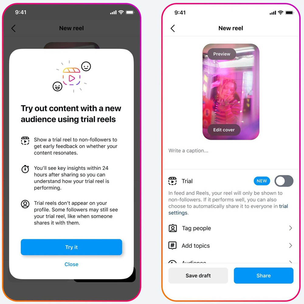 Πιο συγκεκριμένα, θα μπορείτε να μοιραστείτε ένα reel ως “Trial” (δοκιμαστικό) επιλέγοντας την επιλογή “Trial” κατά τη δημιουργία του. Το βίντεο αυτό θα εμφανίζεται σε άτομα που δε σας ακολουθούν αλλά δε θα εμφανίζεται στο κύριο feed σας ή στην καρτέλα με τα reel σας. Το γεγονός ότι είναι δοκιμαστικό δε σημαίνει ότι δεν καταγράφονται τα στατιστικά. Μετά από 24 ώρες, θα μπορείτε να δείτε πως τα έχει πάει, δηλαδή πόσες προβολές έχει, πόσα likes έχει πάρει, τα σχόλια, αλλά και τις κοινοποιήσεις (το λεγόμενο engagement metrics). Ο αντιπρόεδρος του Instagram και επικεφαλής του τμήματος διαχείρισης προϊόντων Ashley Alexander λέει ότι η ιδέα πίσω από τη νέα λειτουργία είναι να το παρέχει έναν τρόπο ώστε να δοκιμάσετε ένα νέο είδος βίντεο, θέμα ή μια νέα μορφή αφήγησης χωρίς την “πίεση” για το πως θα αποδώσει.