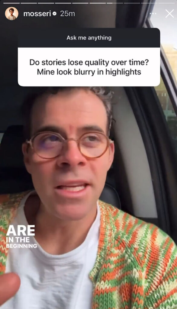 Μεταξύ άλλων, ένας χρήστης τον ρώτησε γιατί τα stories του χάνουν την ποιότητα τους και φαίνονται θολά όσο περνάει ο καιρός όταν τα βλέπει στα highlights. Ο Mosseri απάντησε το εξής: