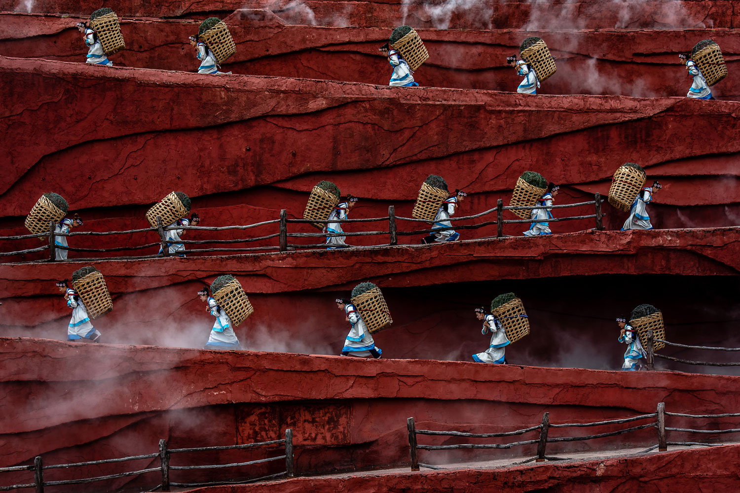 Η λήψη “Rice Growers” έγινε στην Κίνα, μια χώρα που κινείται γρήγορα στη βιομηχανοποίηση και την παγκοσμιοποίηση. Πήγα στην Κίνα για να βρω στοιχεία για τον αρχαίο κινεζικό πολιτισμό, που είναι όλο και πιο σπάνια, αλλά δεν εξαφανίστηκαν ακόμη. Η Κίνα είναι ένας από τους μεγάλους παραγωγούς και καταναλωτές ρυζιού, αλλά κοντά στο Λιτζιάνγκ, στο Γιουνάν, οι γυναίκες που ανήκουν στις φυλές Bai, Naxi και Yi εξακολουθούν να μαζεύουν το ρύζι με το χέρι, ακολουθώντας τις αρχαίες παραδόσεις τους. Φορούν χαρακτηριστικά ρούχα, φορτώνουν βαριά καλάθια γεμάτα ρύζι στους ώμους τους και κινούνται τραγουδώντας παραδοσιακά τραγούδια.