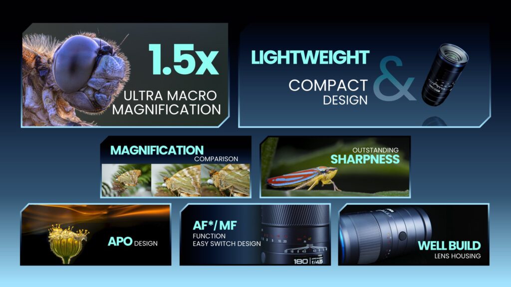 Η Venus Optics ανακοίνωσε επίσημα τον Laowa 180mm f/4.5 1.5X Ultra Macro APO, τον πρώτο τηλε-μακρο φακό της, που συνδυάζει τηλεφακό, μακρο και πορτρέτο σε ένα ιδιαίτερα ελαφρύ και συμπαγές σώμα.