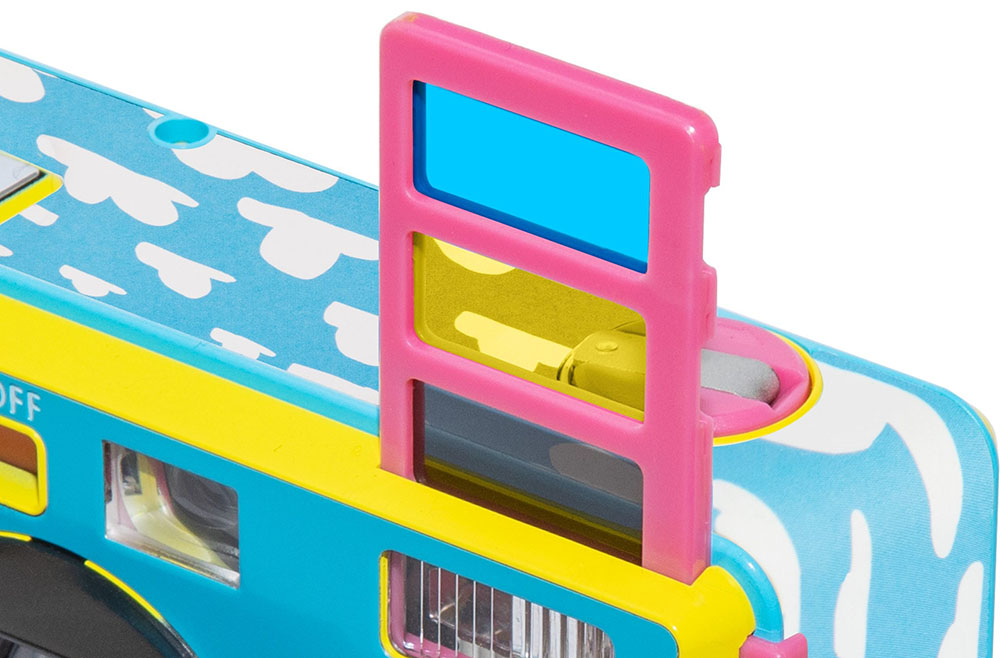 Στη συσκευασία περιλαμβάνεται επίσης ένα αξεσουάρ για εικόνες με εφέ καλειδοσκοπίου, ένα εξάρτημα φακού Lomography Splitzer για εφέ πολλαπλής έκθεσης και ένας close-up αντάπτορας για κοντινές λήψεις που επιτρέπει την εστίαση από 20 εκατοστά απόσταση.