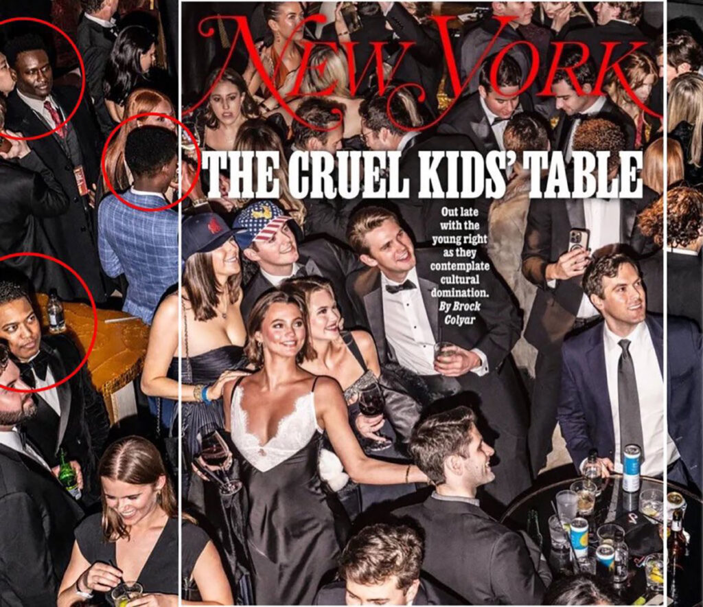 Τι γίνεται με το εξώφυλλο του περιοδικού; Έχουν πράγματι κροπαριστεί οι μαύρου χρώματος παραβρισκόμενοι σε εκδήλωση προς τιμή του νέου προέδρου των ΗΠΑ; Το New York Magazine πάντως για αυτό ακριβώς το κατηγορούν. Η φωτογραφία του εξωφύλλου που θα δείτε έχει τραβηχτεί από τον Mark Peterson και δείχνει νέους υποστηρικτές του Donald Trump στα πλαίσια της εκδήλωσης Power 30 Awards στην Ουάσιγκτον. Εν τω μεταξύ, χορηγός της εκδήλωσης ήταν η εταιρία του TikTok. Το άρθρο (του Brock Colyar) που συνοδεύει τη φωτογραφία αυτή έχει τίτλο “The Cruel Kids’ Table” και δείχνει άτομα που είχαν βοηθήσει στο να εκλεγεί ο Trump με το να επηρεάζουν την κοινή γνώμη στα social media. Στη λήψη φαίνονται μόνο άτομα άσπρου δέρματος.