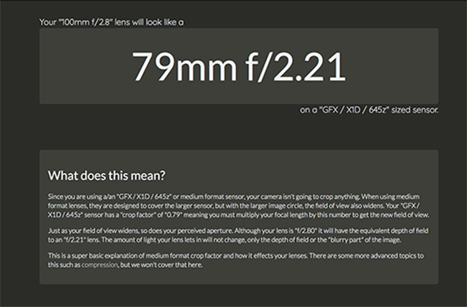Το ωραίο με την ιστοσελίδα είναι ότι μπορεί κάποιος να κάνει την αναγωγή ακόμα και από συστήματα με μικρό αισθητήρα, όπως compact μηχανές ή smartphones αλλά ακόμα και από μεσαίου ή μεγάλου φορμά.