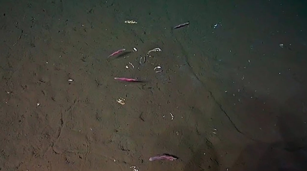 Όταν το είδαμε για πρώτη φορά, αρχίσαμε αμέσως να ρωτάμε τι ήταν. Ένα σπονδυλωτό είδος; Κάποιο παράξενο ψάρι; Είχαμε μόνο μια θολή εικόνα και αυτό ήταν, αλλά μας κίνησε πολύ το ενδιαφέρον. Έτσι είναι εκεί κάτω, βλέπεις διάφορα πράγματα για ένα λεπτό, και το επόμενο λεπτό έχουν φύγει.