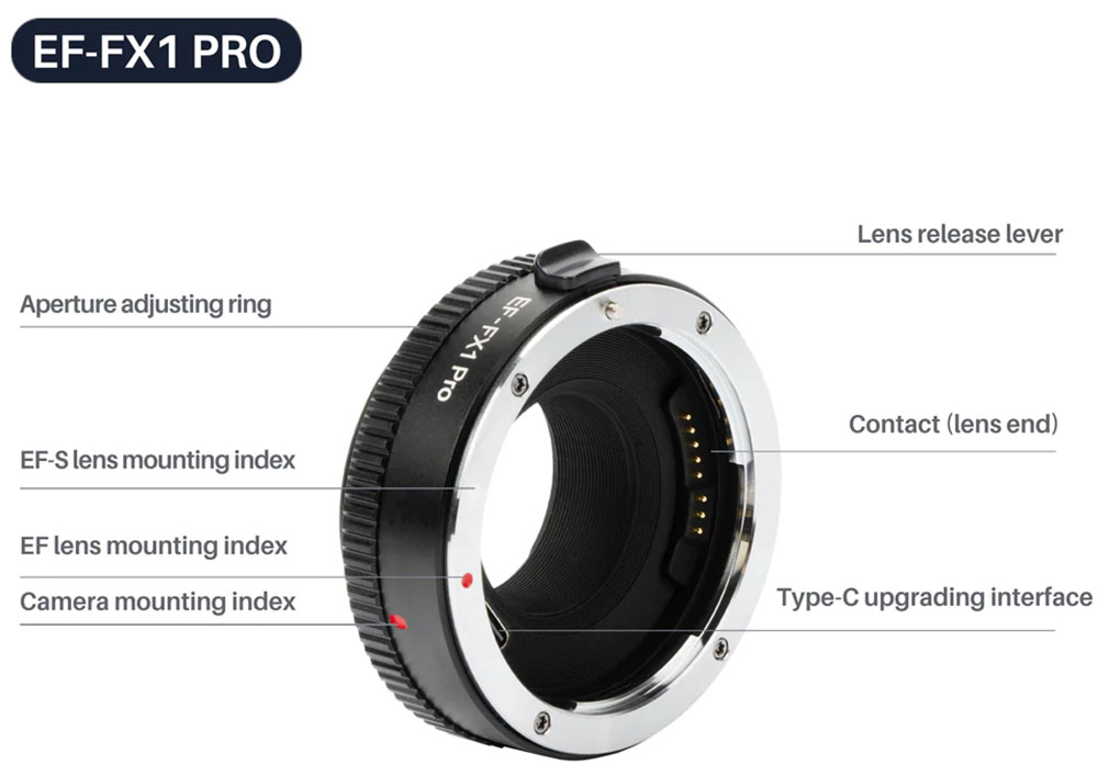 Ο νέος αναβαθμισμένος αντάπτορας της εταιρίας έχει διαστάσεις 72.5 x 69.1 x 32.2mm και ζυγίζει 126 γραμμάρια. Επιτρέπει τη χρήση φακών Canon EF και EF-S σε σώματα Fujifilm X διατηρώντας την αυτόματη εστίαση και χαρακτηριστικά όπως αναγνώριση σκηνής, προσώπου, AF-C αλλά και αυτόματη εστίαση στο βίντεο. Η μεγαλύτερη διαφορά σε σχέση με τον παλιότερο αντάπτορα της εταιρίας (EF-FX 1) είναι ότι διαθέτει δακτύλιο ρύθμισης διαφράγματος, για να έχετε ίδια αίσθηση χρήσης και εργονομίας όπως με τους φακούς fujinon (που διαθέτουν δακτύλιο διαφράγματος).