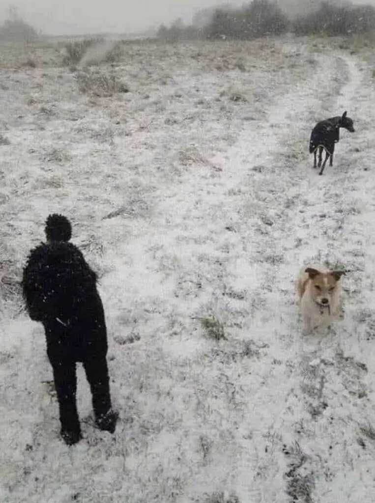 Πρόκειται για μια ιδιαίτερη περίπτωση! Η φωτογραφία που θα δείτε παρακάτω έχει ήδη γίνει γνωστή στο διαδίκτυο με τους θεατές να μπερδεύονται για το τι ακριβώς βλέπουν στη φωτογραφία! Αρκετοί “ορκίζονται” ότι βλέπουν έναν άντρα ντυμένο στα μαύρα (στα αριστερά) να κάνει βόλτα με 2 σκύλους στο χιόνι. Για δείτε και εσείς: