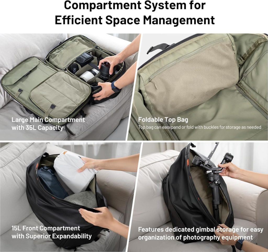 Το σακίδιο είναι διαθέσιμο σε δύο χρώματα, Μαύρο και Λαδί, και μπορεί να φορεθεί με τρεις διαφορετικούς τρόπους, προσφέροντας έτσι μεγάλη ευελιξία. Συνδυάζει ιδανικά ευρύχωρο σχεδιασμό, έξυπνη κατασκευή και ανθεκτικά υλικά, και είναι συμβατό με μια ευρεία γκάμα εξοπλισμού φωτογραφίας και βιντεοσκόπησης, DSLR και mirrorless καθώς και drones της DJI.