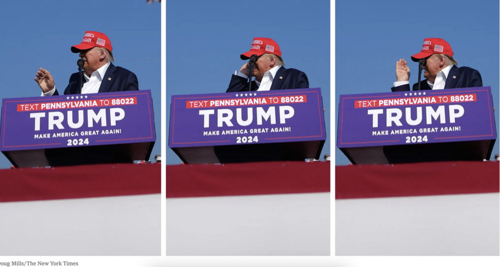 Ο βραβευμένος φωτογράφος Doug Mills απαθανάτισε τη σφαίρα να περνά ξυστά από το κεφάλι του Trump κατά την απόπειρα δολοφονίας του.